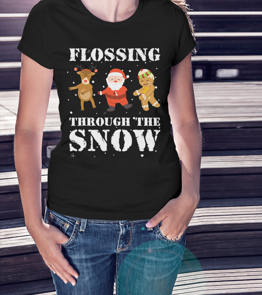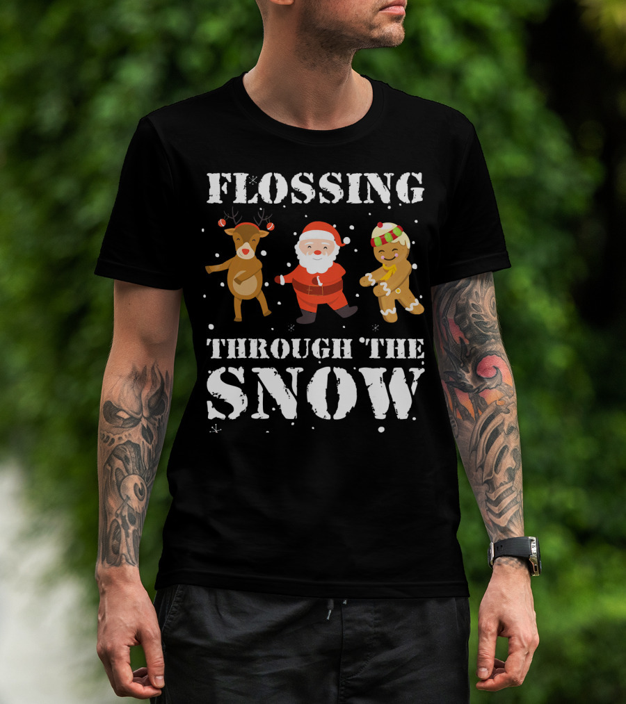 Flossing Through The Snow Santa Reindeer Gingerbread Dancing T-Shirt