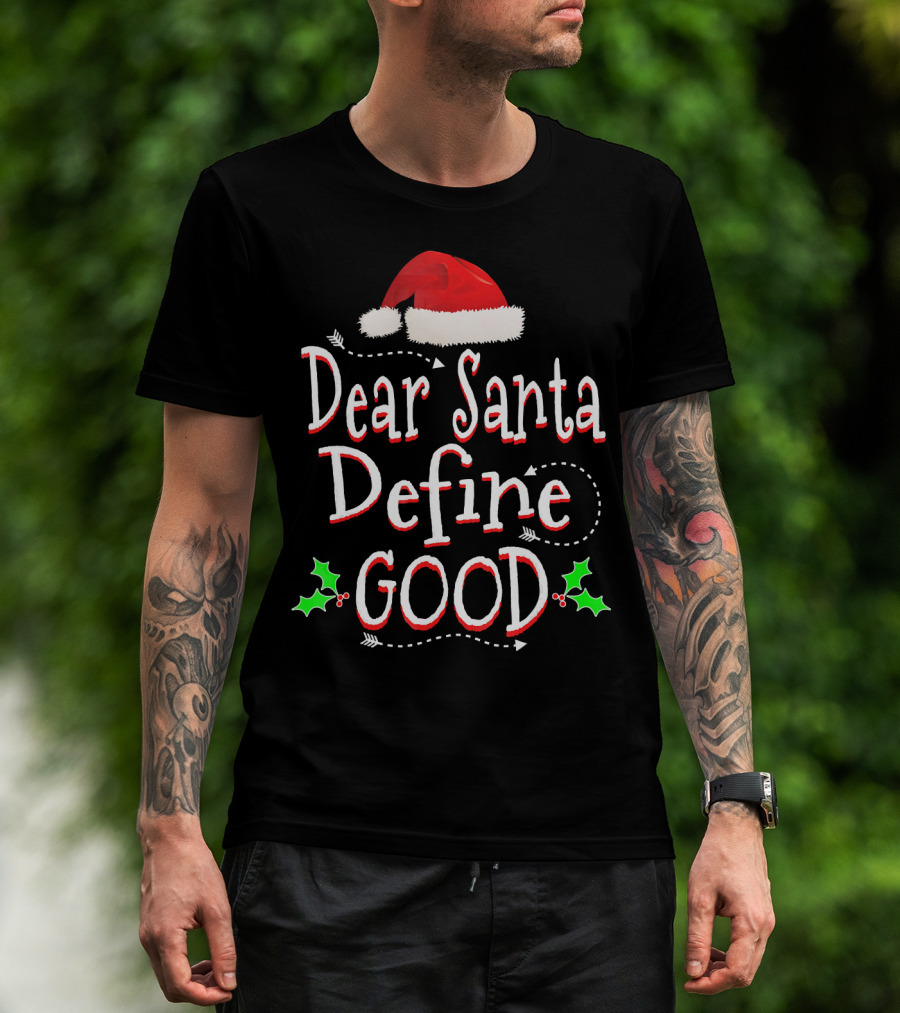 Dear Santa Define Good Christmas Humor With Santa Hat And Holly Leaves T-Shirt