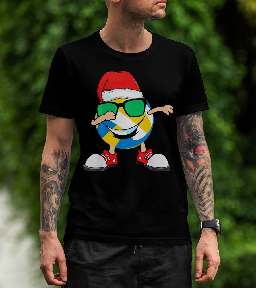 Dabbing Smiling Volleyball Santa Hat With Sunglasses And Shoes T-Shirt