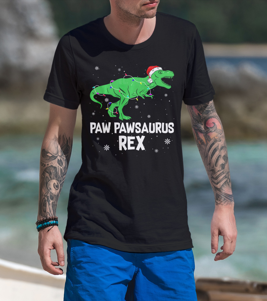 Paw Paw Saurus Rex Santa Hat Christmas Lights T-Shirt