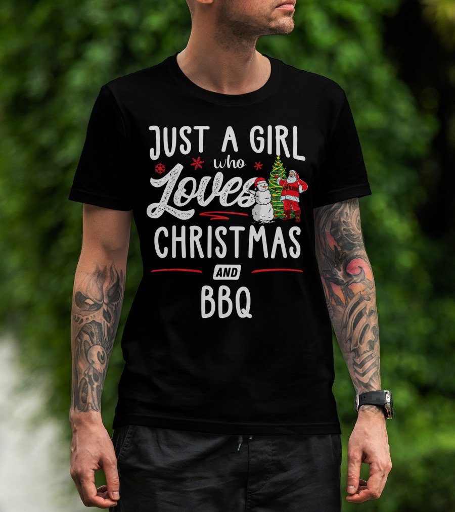 Just A Girl Who Loves Christmas Santa Snowman BBQ T-Shirt