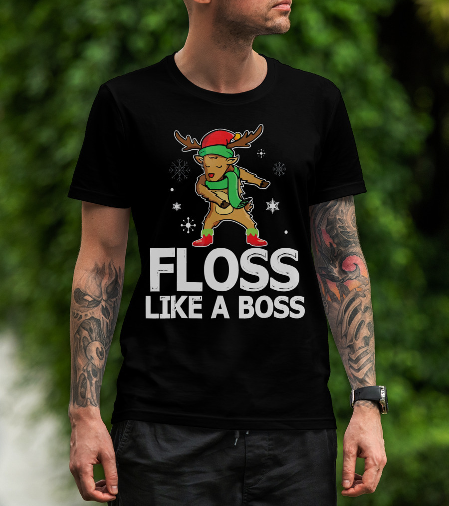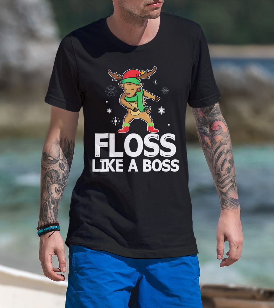 Reindeer ELF Costume Floss Like A Boss Snowflakes Christmas Dance T-Shirt