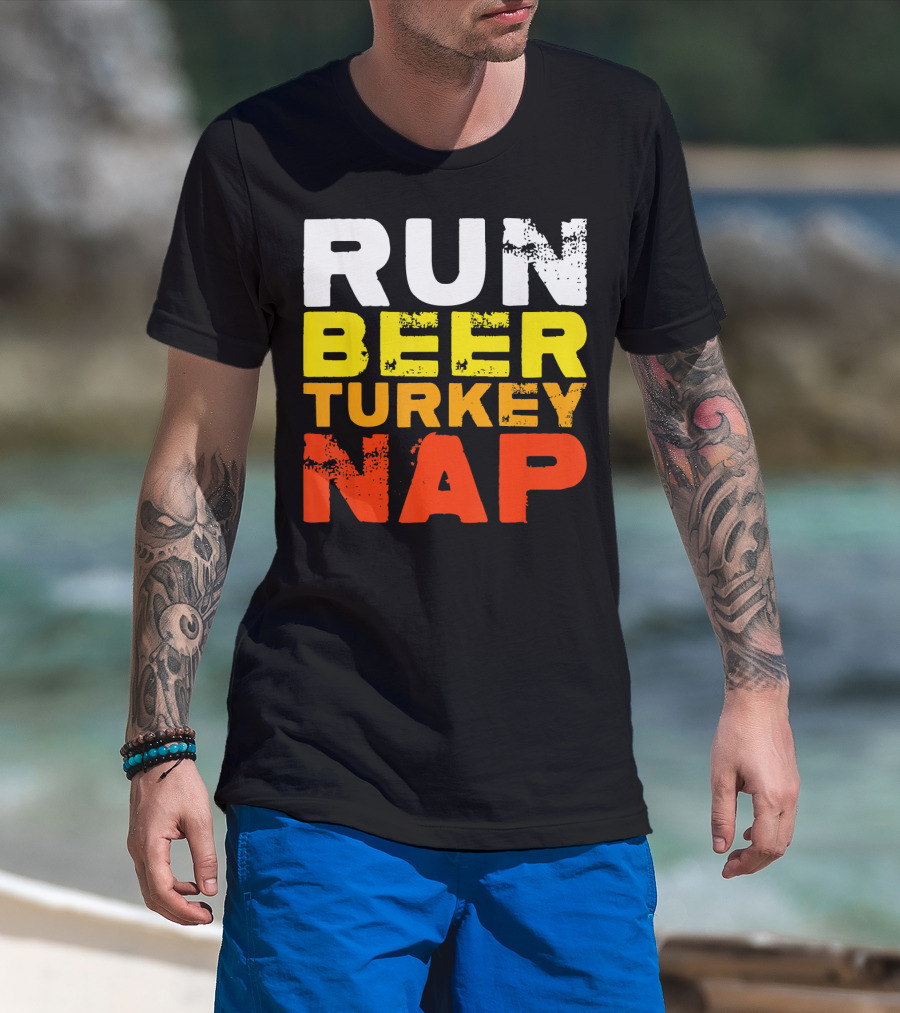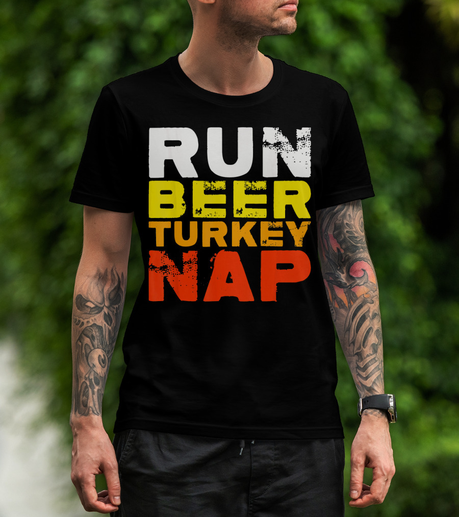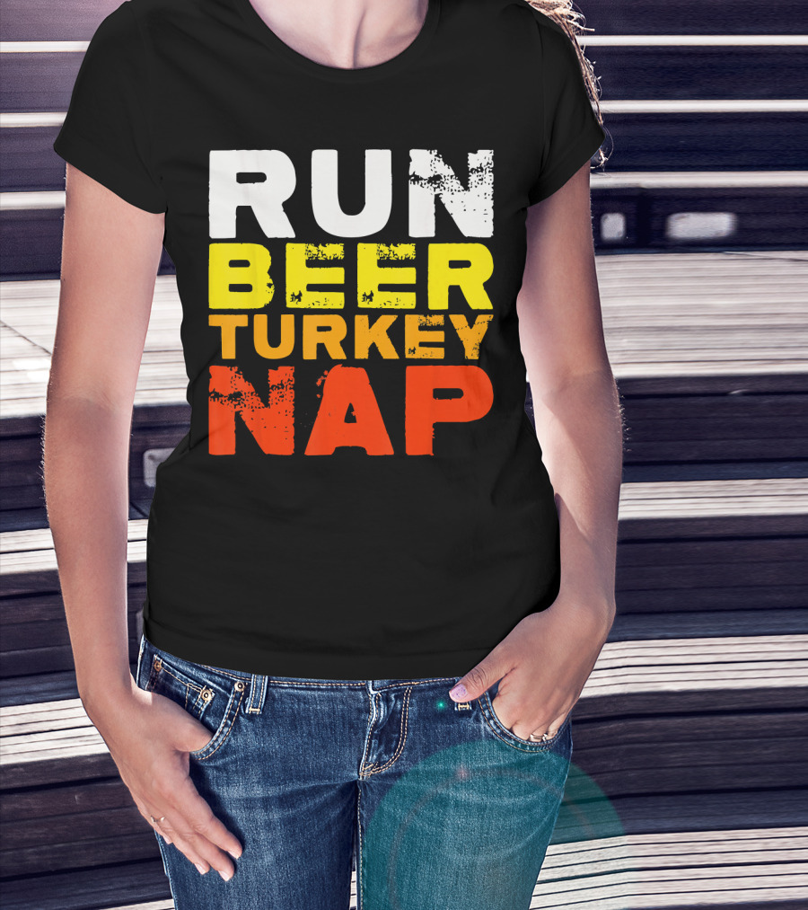 Run Beer Turkey Nap Christmas Din Festive Humor T-Shirt