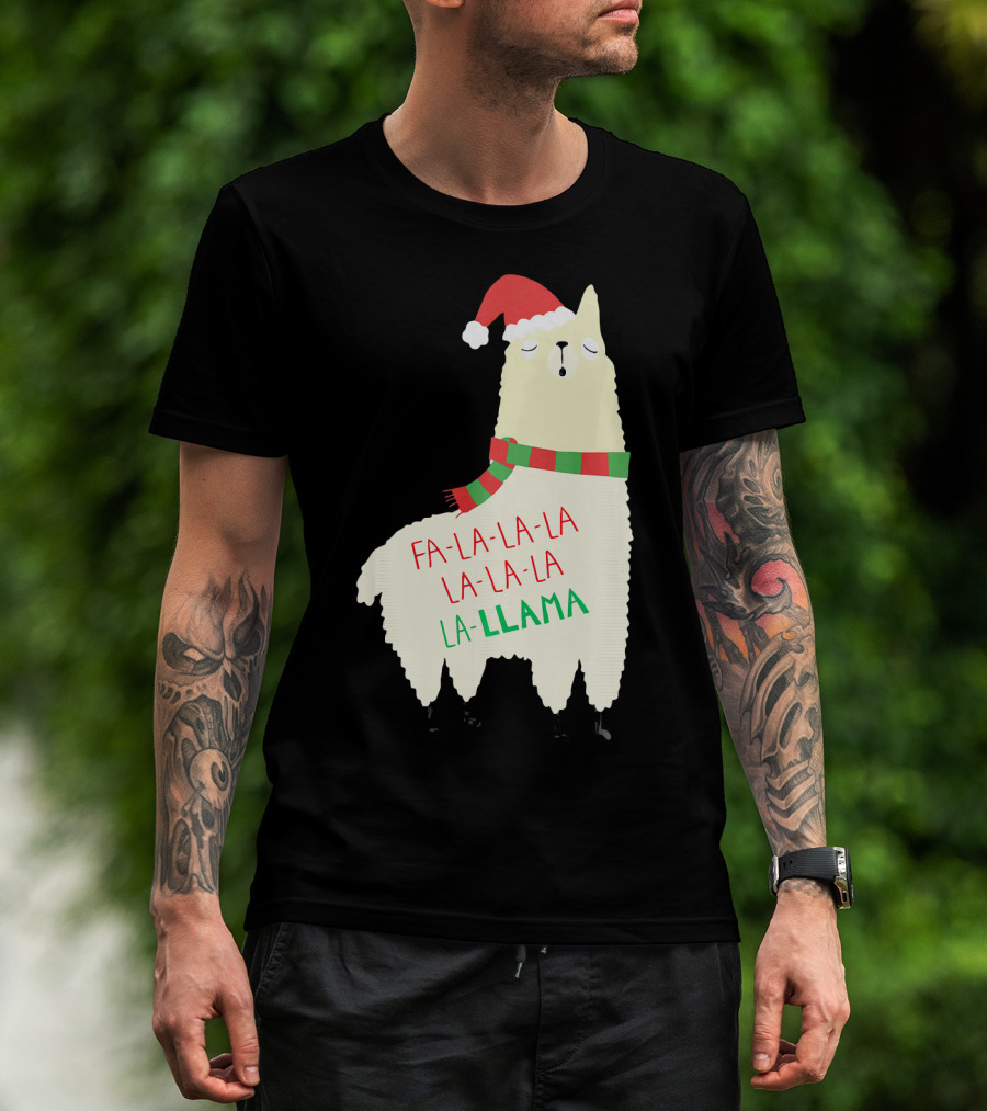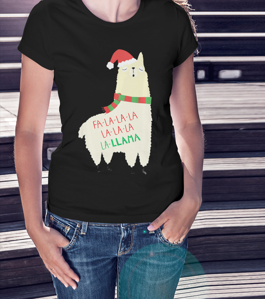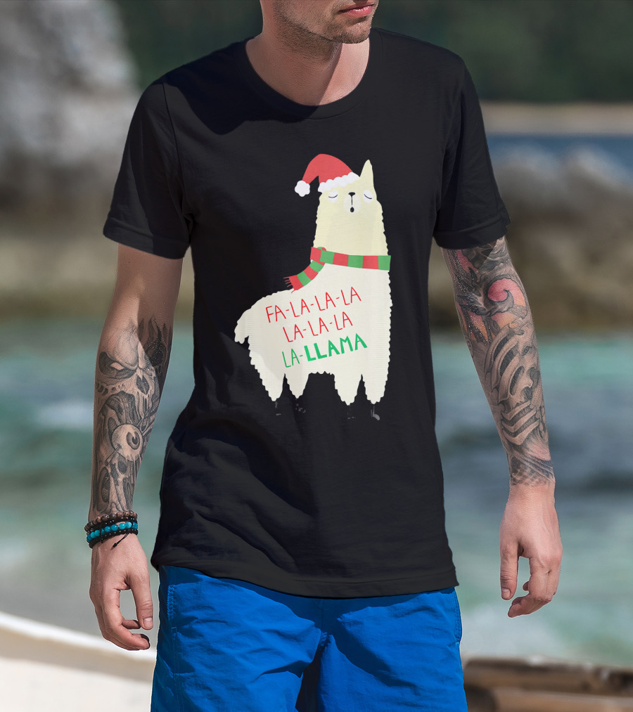 Fa La La La Llama Holiday Llama In Santa Hat And Scarf T-Shirt