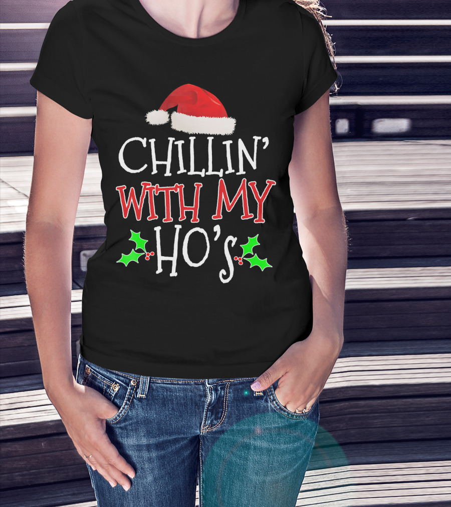 Chillin' With My Ho's Santa Hat Holly Christmas T-Shirt