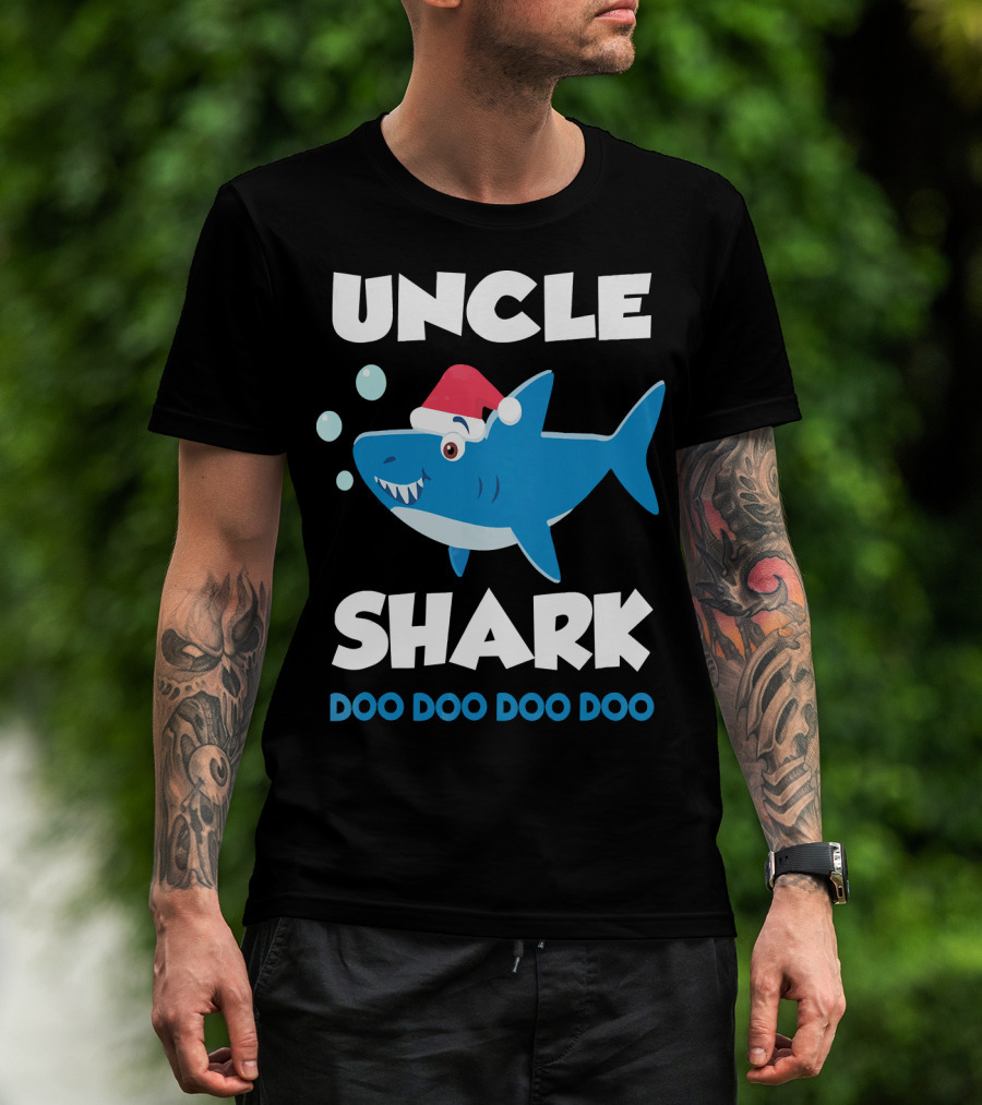 Uncle Shark Doo Doo Doo Doo Christmas Shark Santa Hat T-Shirt