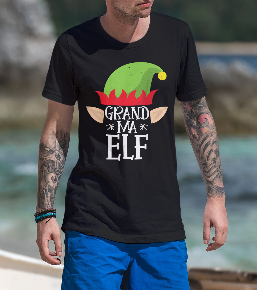 Grandma Elf Funny Christmas Family Match Hat Ears Holiday T-Shirt