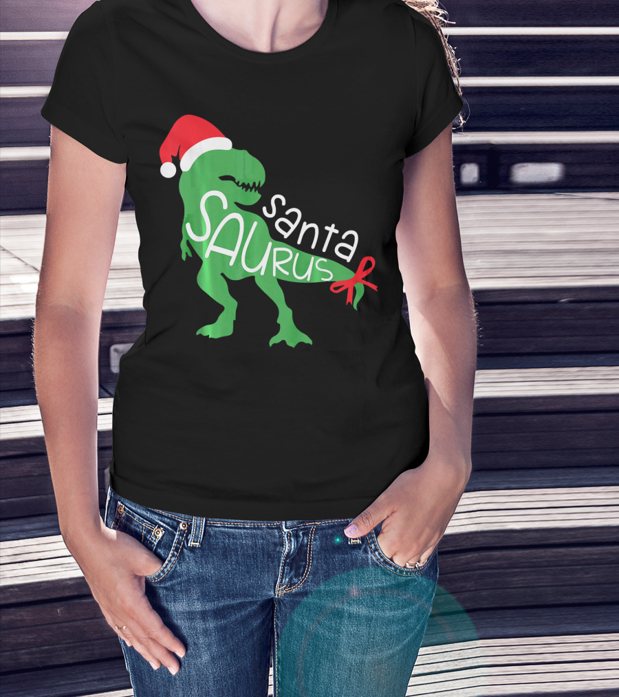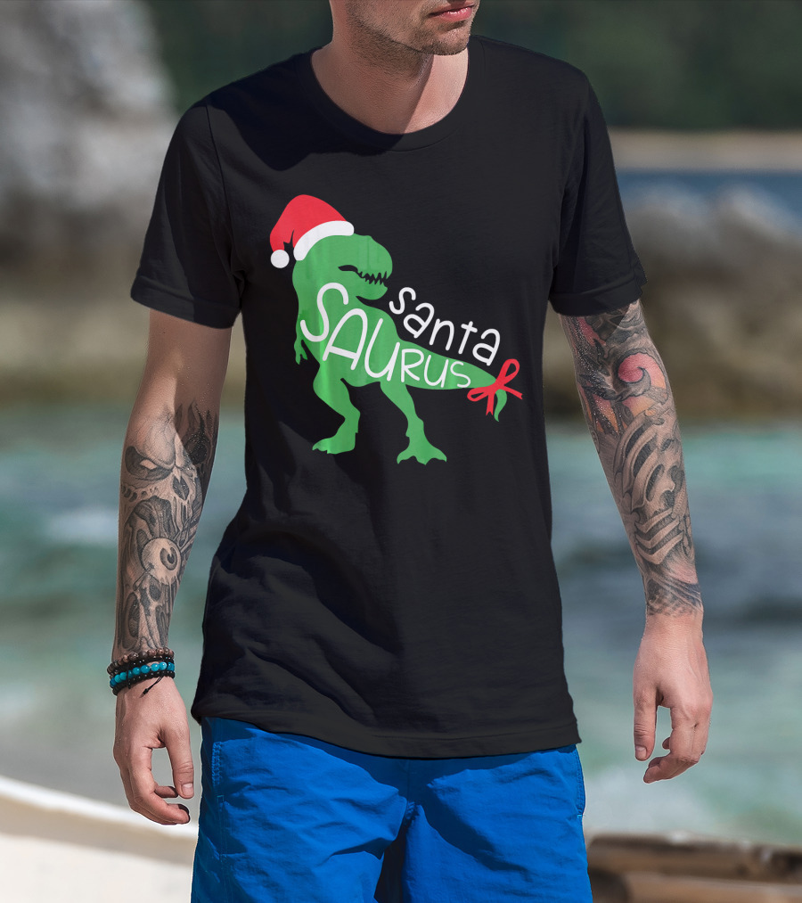 T Rex Dinosaur Santa Saurus Merry Funny Christmas Hat T-Shirt