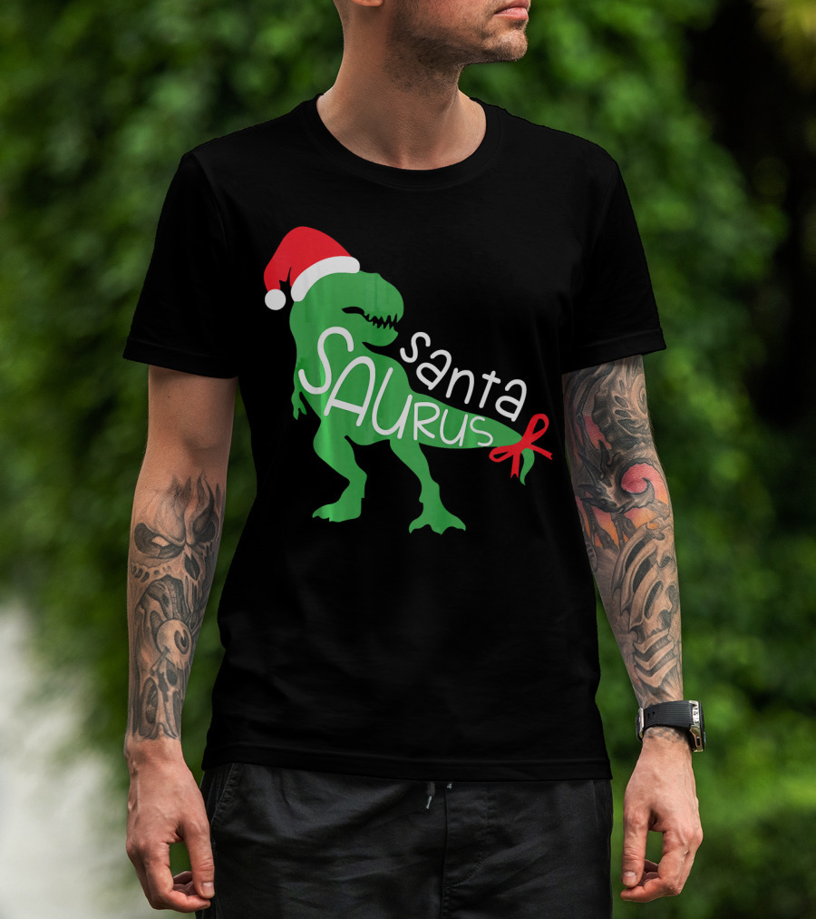 The T Rex Dinosaur Santa Saurus Merry Funny Christmas Hat T-shirt is designed for everyday wear and a consistent fit. Fabric is pre-shrunk ring-spun cotton with durable stitching. See the size chart below for exact measurements.