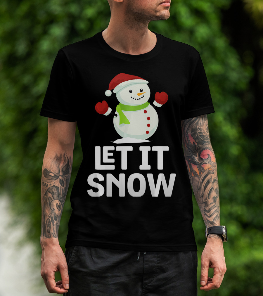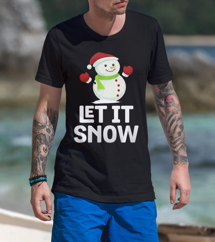 Let It Snow Snowman With Santa Hat And Snowflakes T-Shirt
