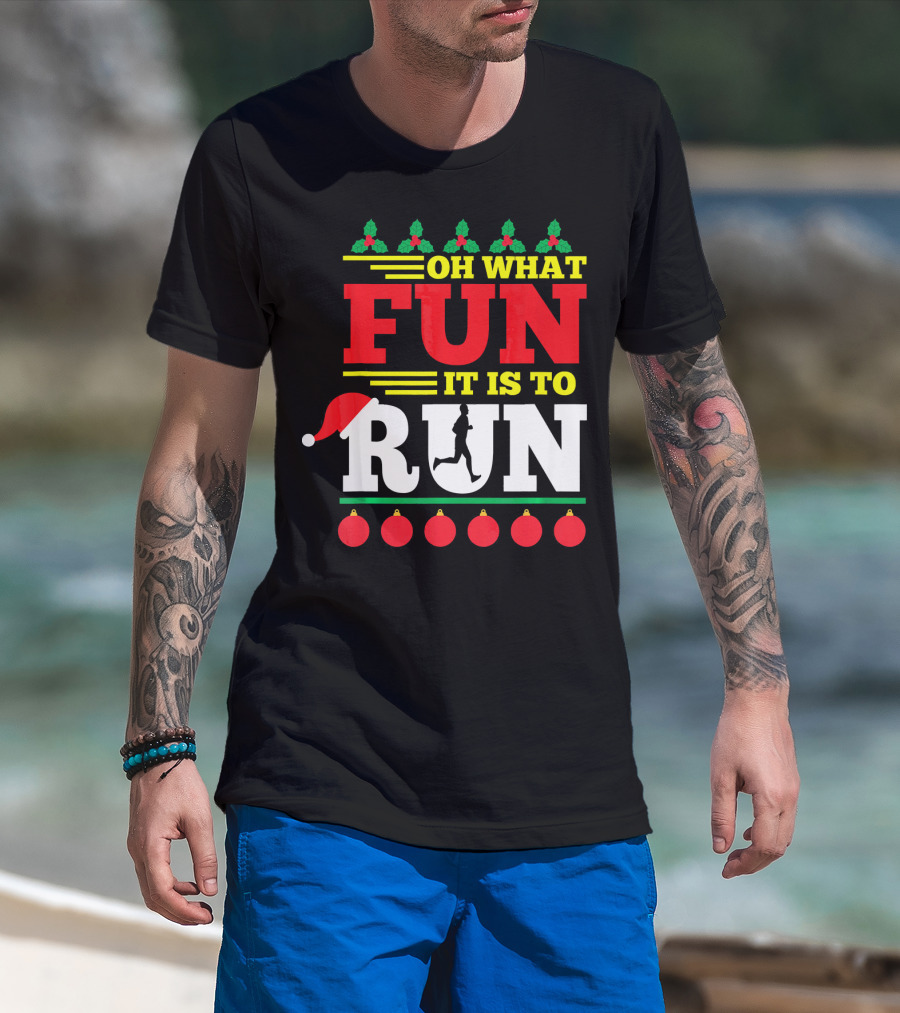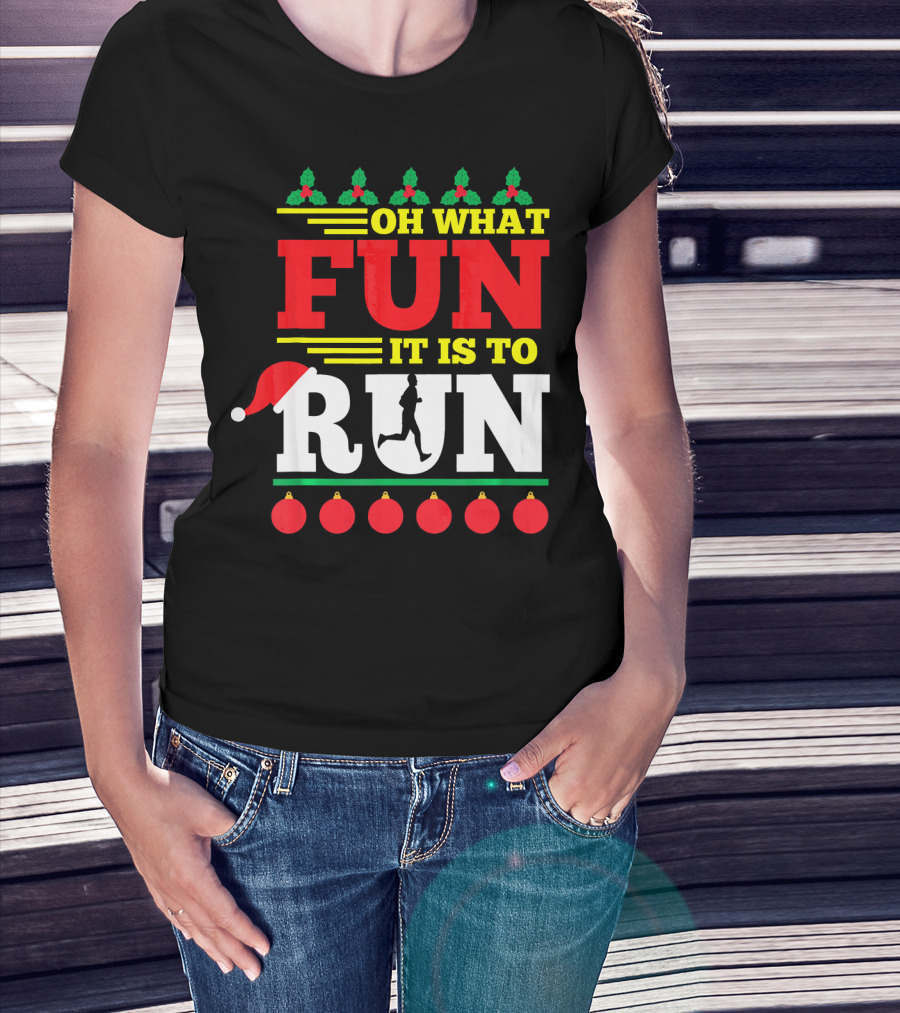 Oh What Fun It Is To Run Ugly Christmas T-Shirt