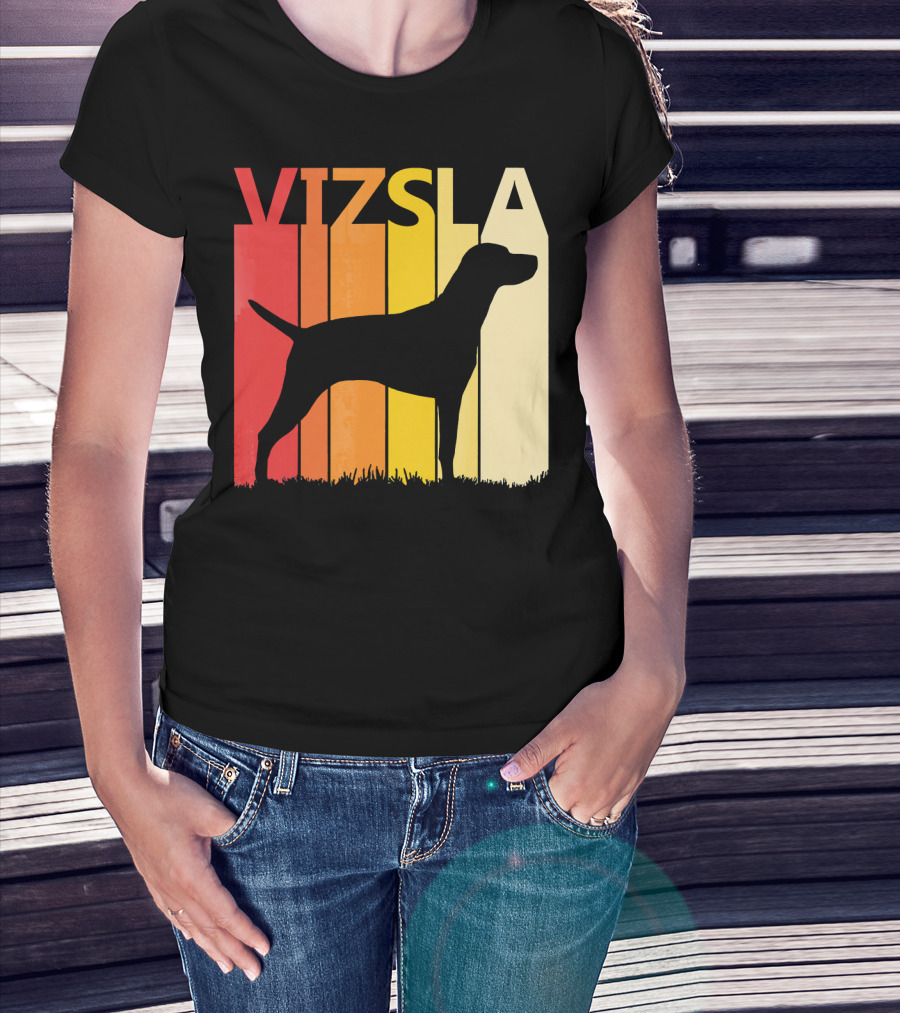 Retro Vizsla Dog Silhouette With Gradient Stripes T-Shirt