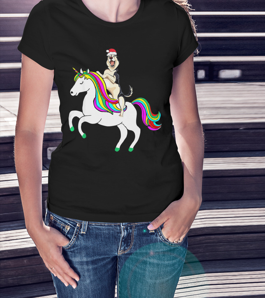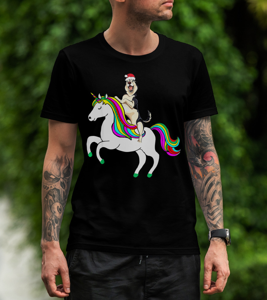 Pug Christmas Dog Riding Rainbow Unicorn T-Shirt