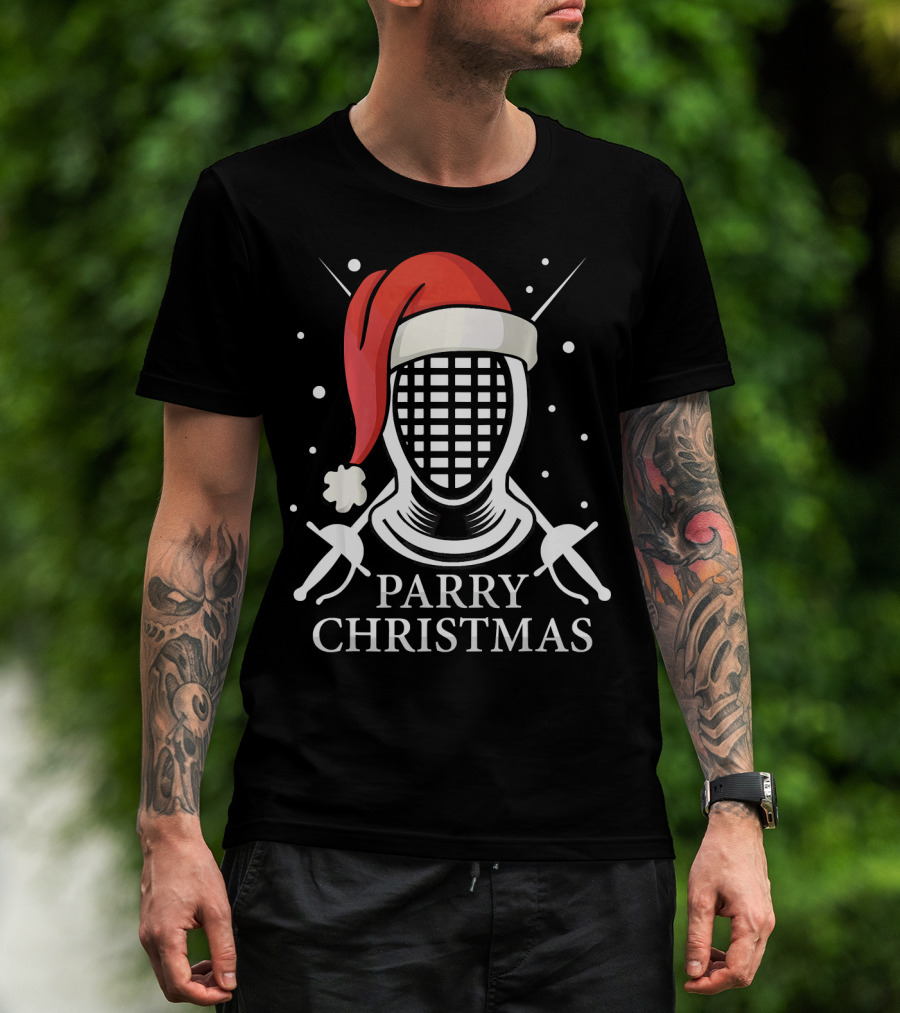 The Parry Christmas Fencing Santa T-shirt is designed for everyday wear and a consistent fit. Fabric is pre-shrunk ring-spun cotton with durable stitching. See the size chart below for exact measurements.