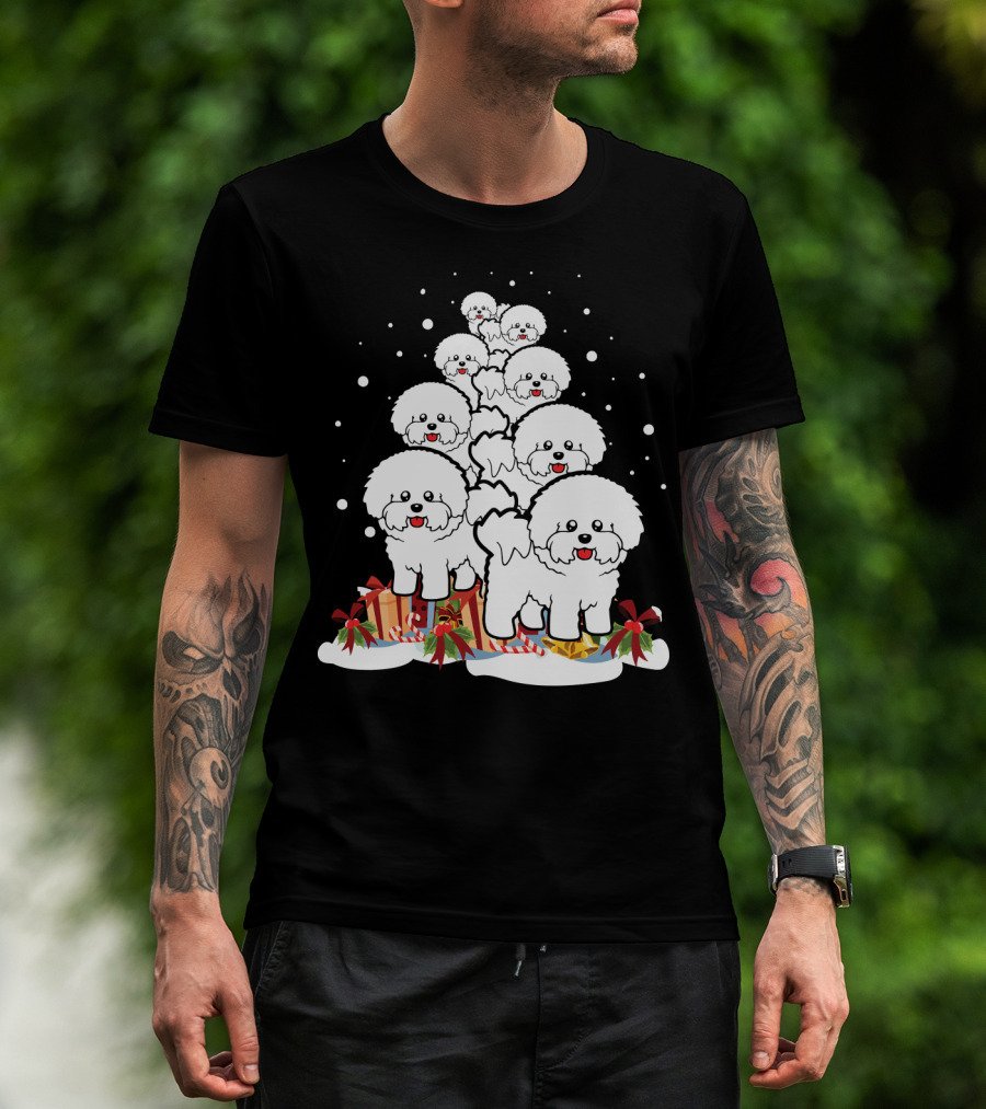 Bichon Frise Christmas Tree With Gifts And Snowflakes T-Shirt