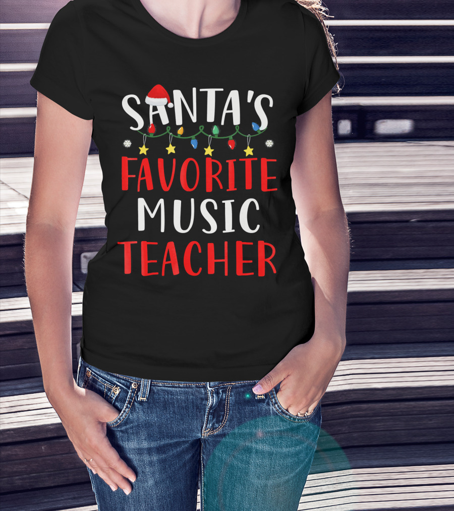 Santa's Favorite Music Teacher Holiday Lights And Stars T-Shirt