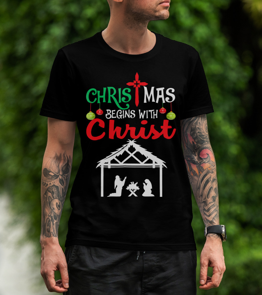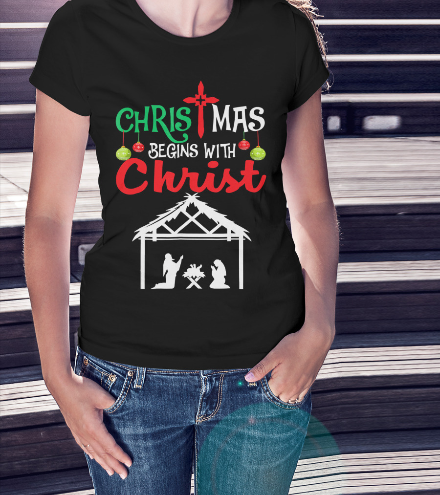 Christmas Begins With Christ Nativity Scene Christian T-Shirt
