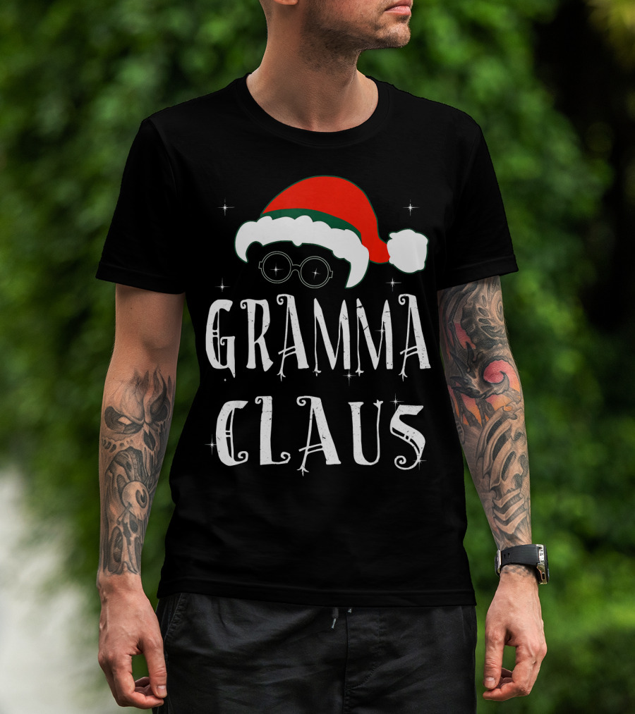 Gramma Claus Matching Family Group Christmas Holiday Santa Hat Glasses T-Shirt