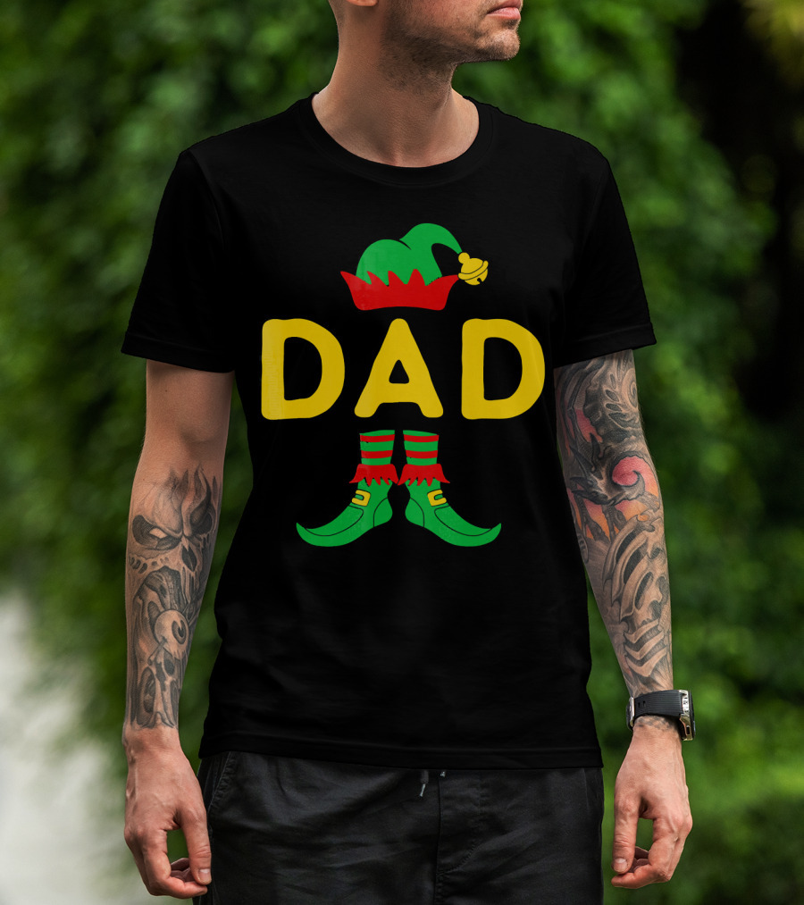 Dad Elf Hat And Boots Festive Christmas Family Mat T-Shirt