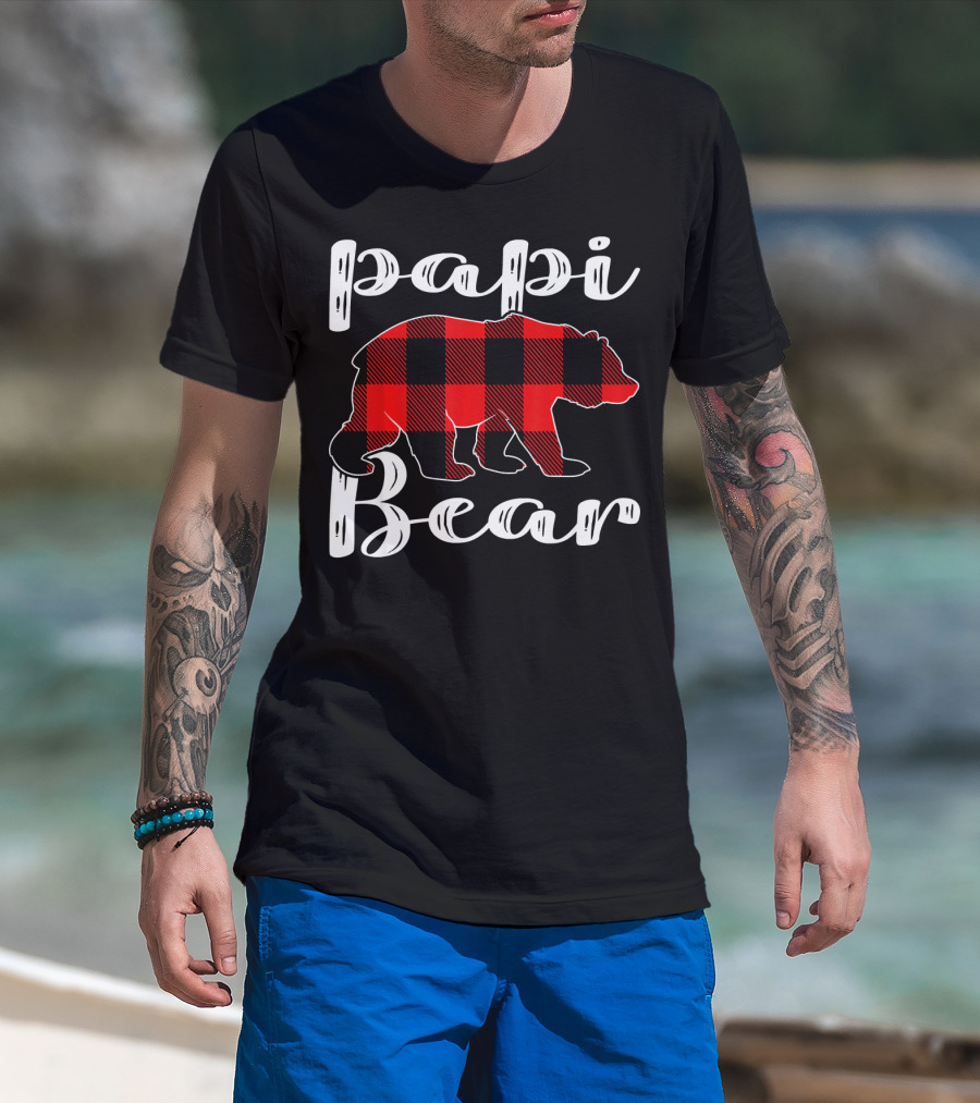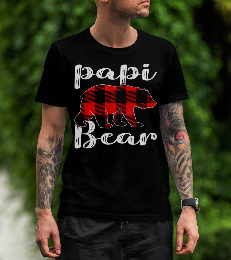 Papi Bear Plaid Christmas Matchin Buffalo Check T-Shirt