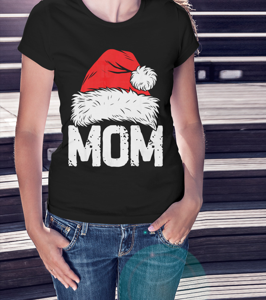 Mom Christmas Santa Hat Family Match T-Shirt