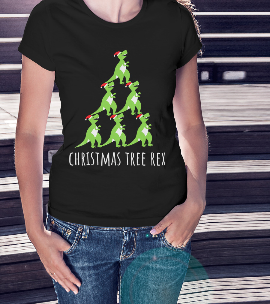 Christmas Tree Rex Dino Funny Boy Girl Santa Hats T-Shirt