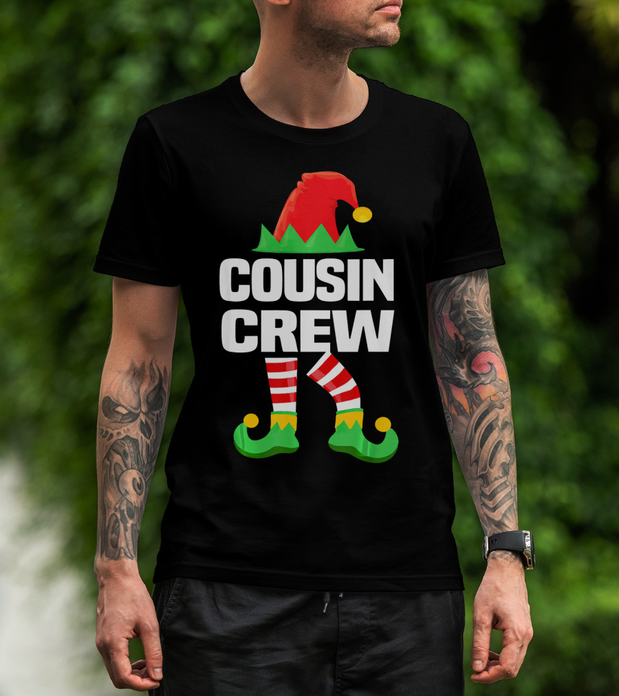 The Cousin Crew Elf Hat Striped Legs Christmas T-shirt is designed for everyday wear and a consistent fit. Fabric is pre-shrunk ring-spun cotton with durable stitching. See the size chart below for exact measurements.