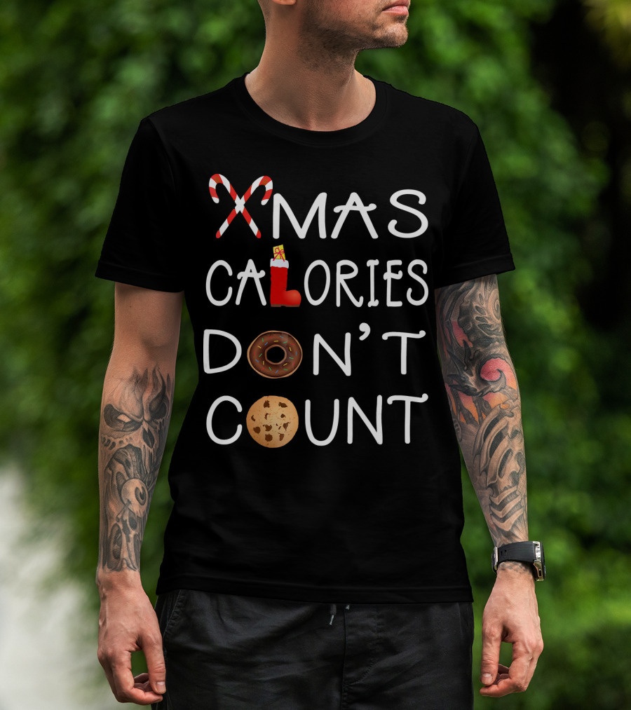 Xmas Calories Don't Count Candy Cane Boot Donut Cookie T-Shirt