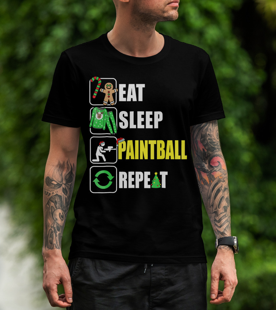 Festive Eat Sleep Paintball Repeat Christmas T-Shirt