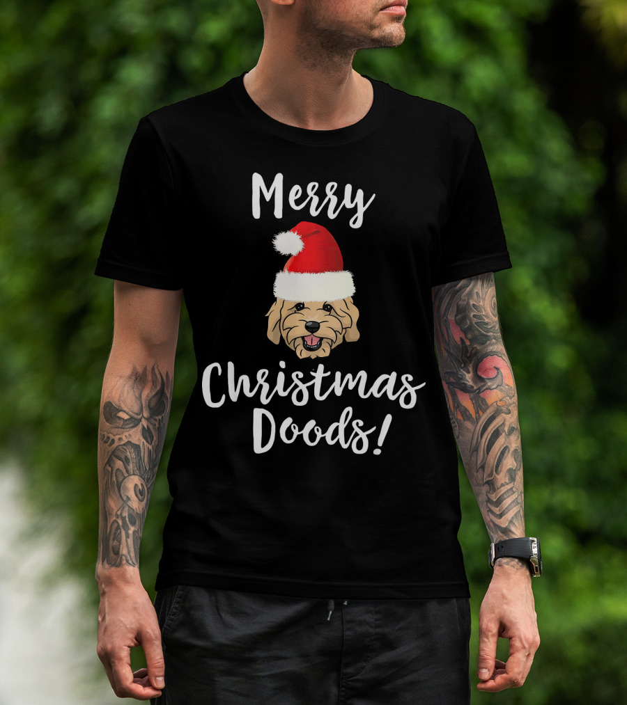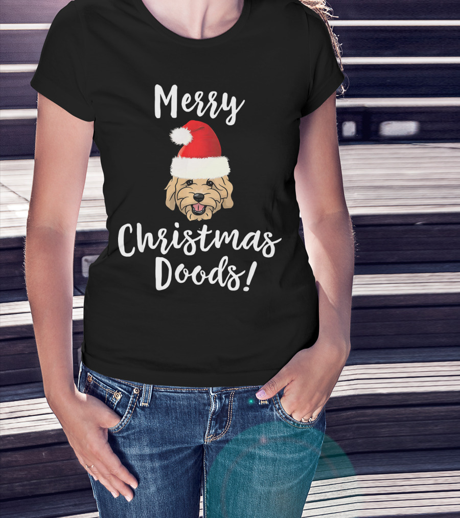 Merry Christmas Doods Santa Hat Goldendoodle Dog T-Shirt
