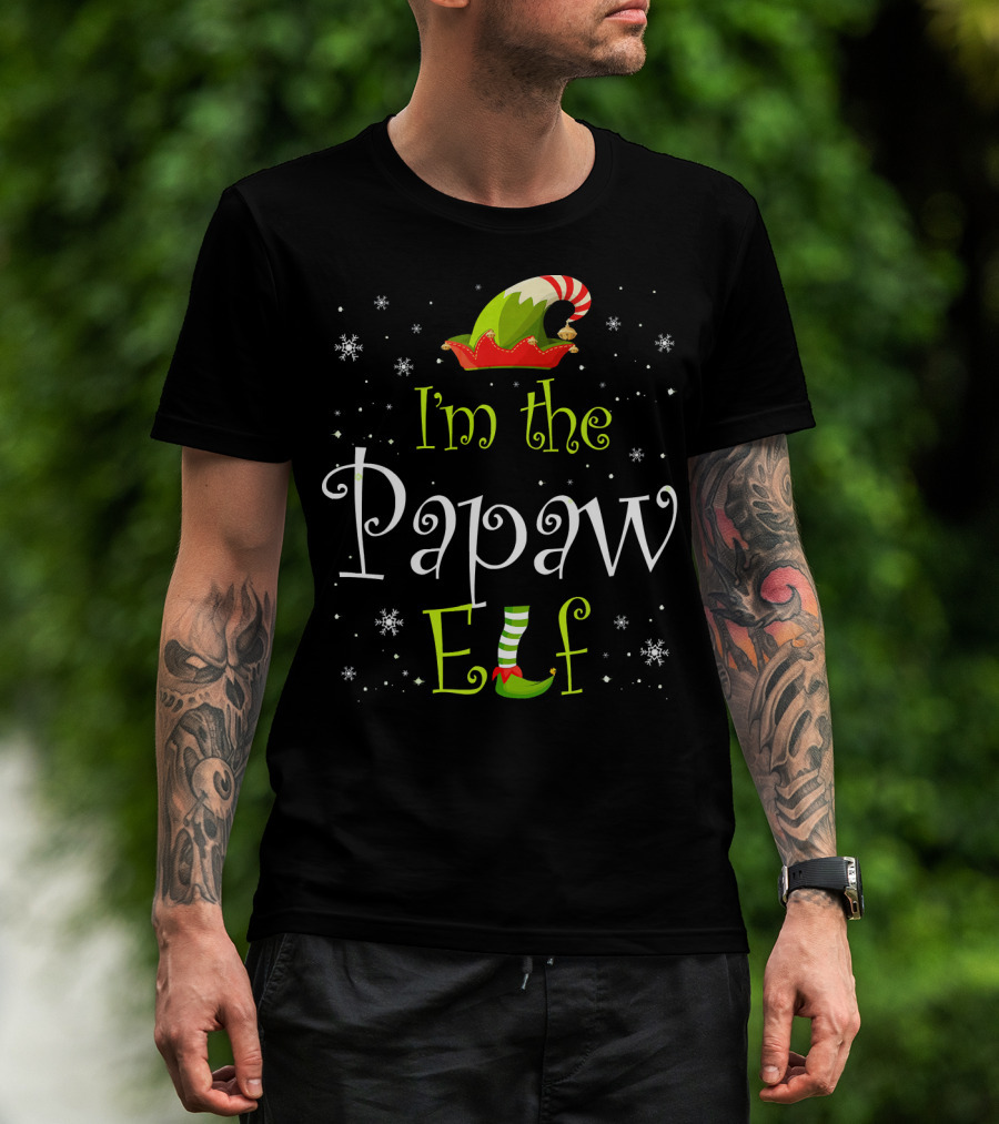 I'm The Papaw Elf Matching Family Group Christmas Snowflakes Hat And Shoe T-Shirt