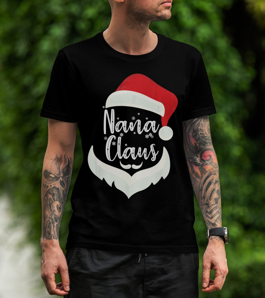 Nana Claus Santa Hat Beard Snowflakes T-Shirt