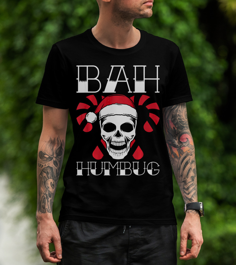 Bah Humbug Skull With Xmas Hat And Candy Canes T-Shirt