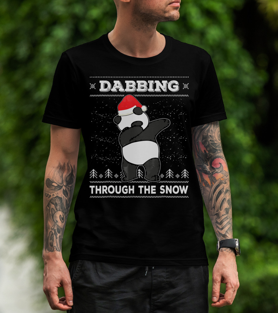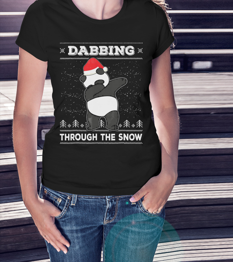 Dabbing Panda Through The Snow Ugly Christmas T-Shirt