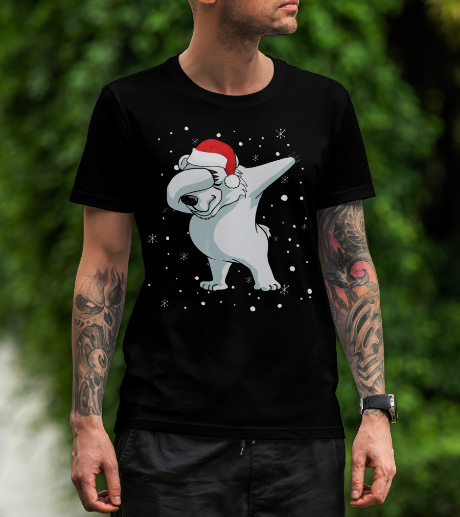 Santa Hat Dabbing Polar Bear Snowflakes T-Shirt