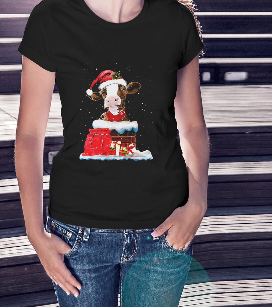 How much will this Cow with Santa Hat in Chimney and Christmas Gifts shirt shrink?