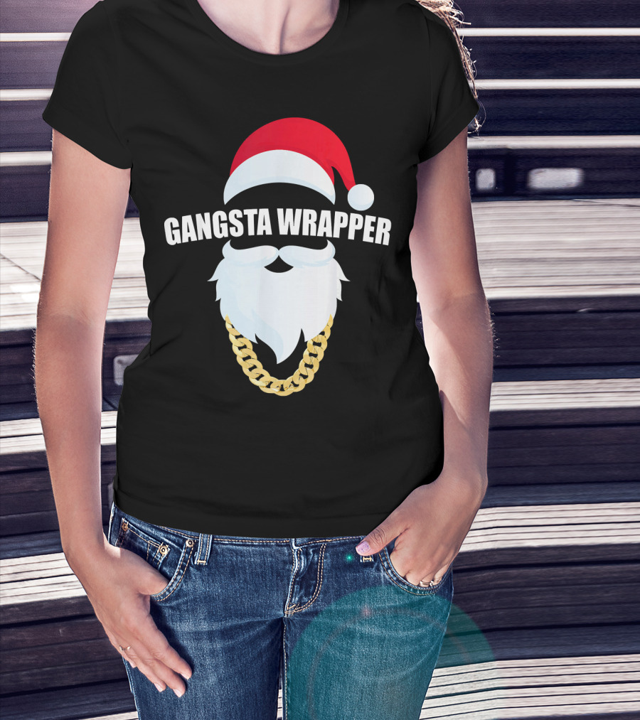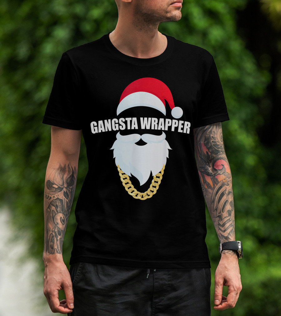 The Gangsta Wrapper Santa with Gold Chain Beard and Hat T-shirt is designed for everyday wear and a consistent fit. Fabric is pre-shrunk ring-spun cotton with durable stitching. See the size chart below for exact measurements.