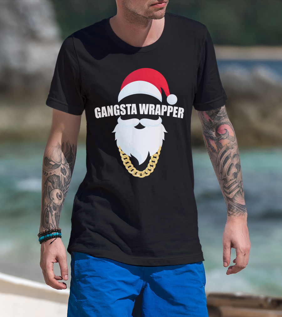 Gangsta Wrapper Santa With Gold Chain Beard And Hat T-Shirt