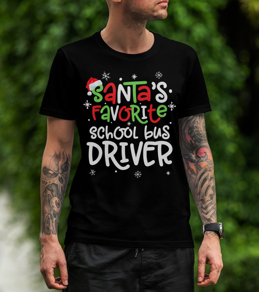 Santa's Favorite School Bus Driver Christmas Snowflakes T-Shirt