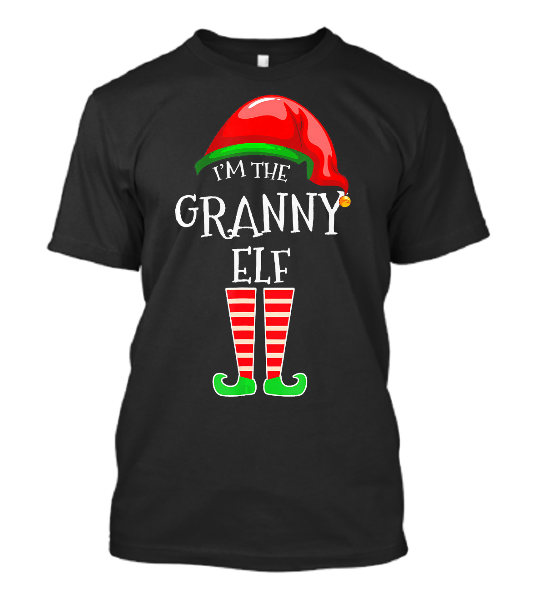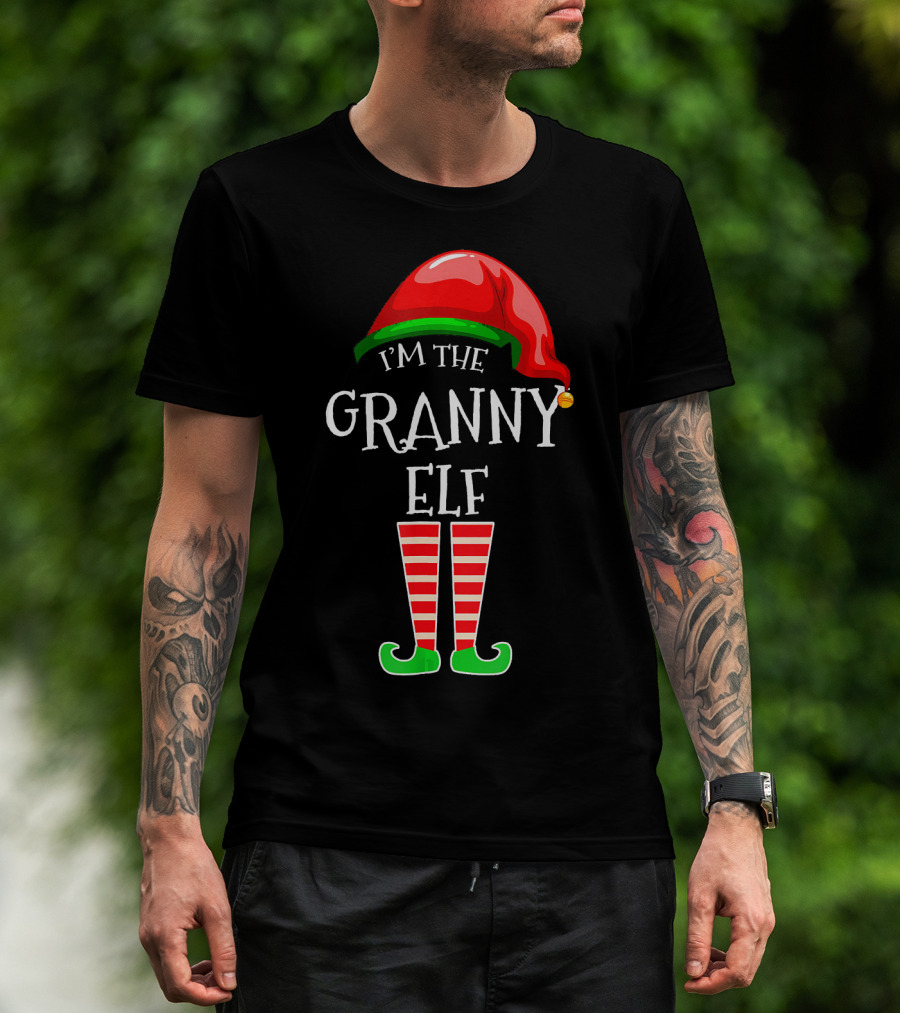 I'm The Granny Elf Christmas Hat And Striped Stockings T-Shirt