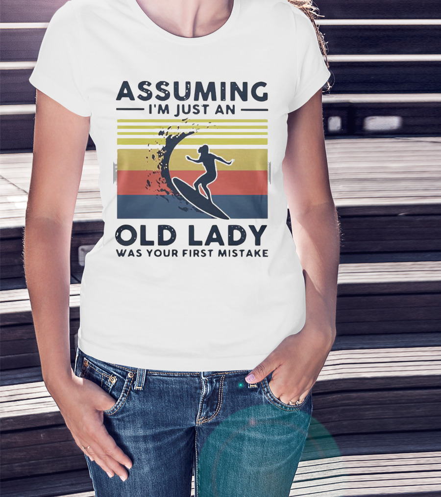 Assuming I'm Just An Old Lady Was Your First Mistake Surfing Silhouette Vintage Stripes T-Shirt