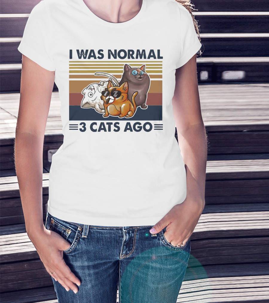 I Was Normal 3 Cats Ago Retro Style Black Version T-Shirt