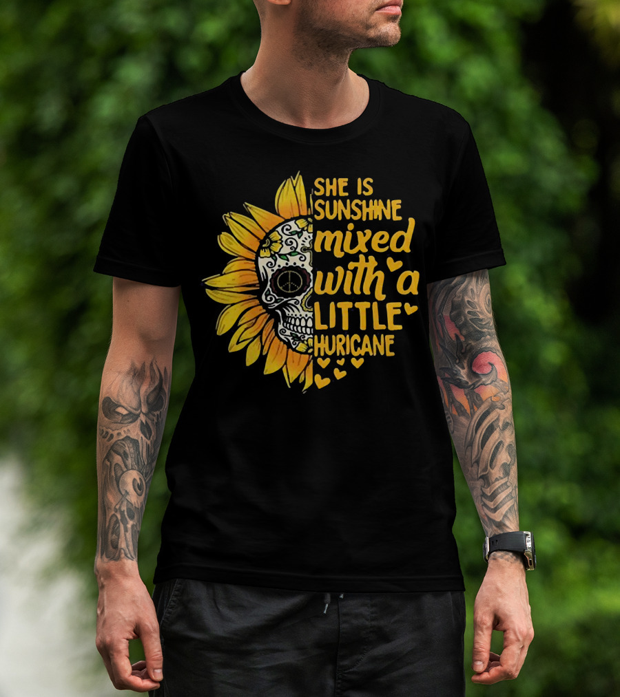She Is Sunshine Mixed With A Little Hurricane Sunflower Skull T-Shirt