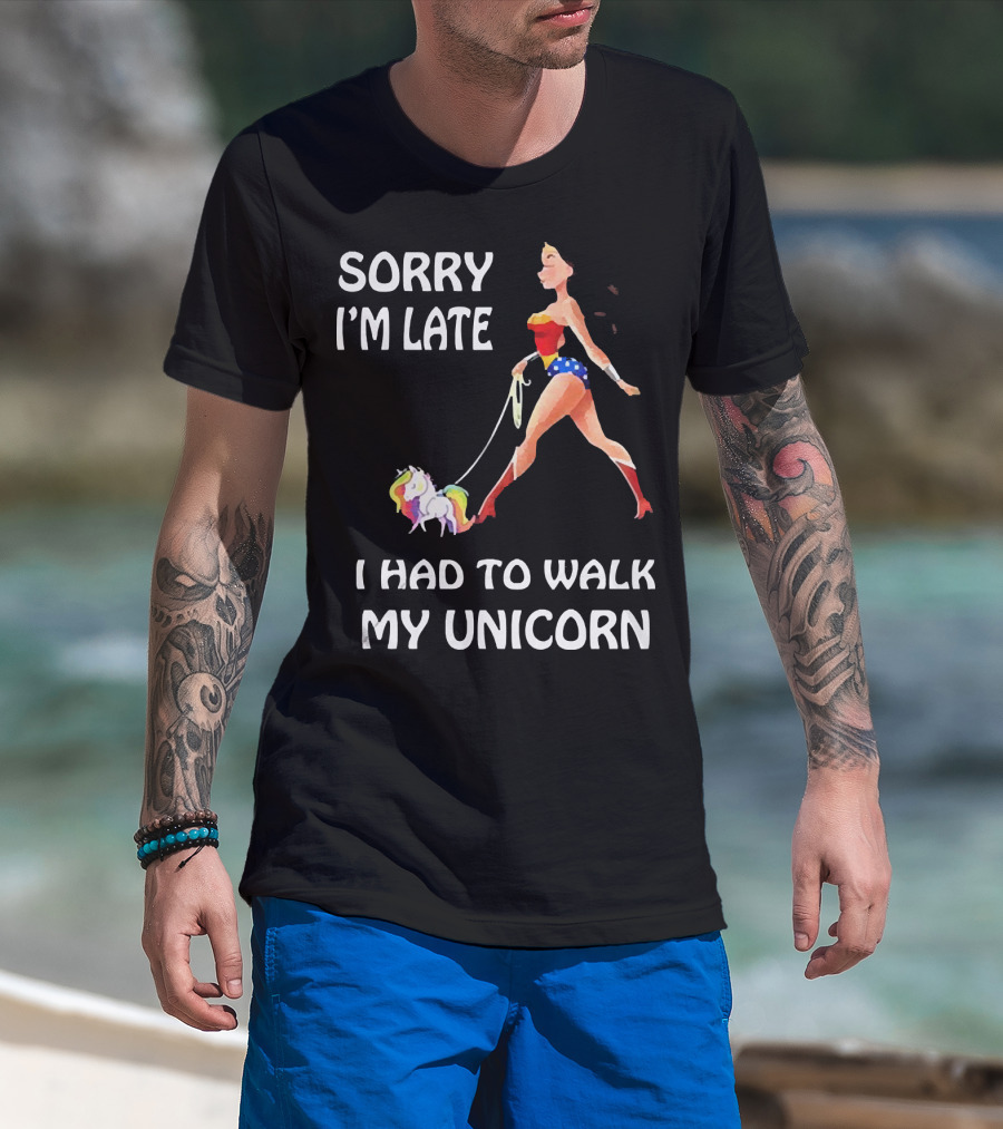 Sorry I'm Late I Had To Walk My Unicorn Wonder Woman T-Shirt