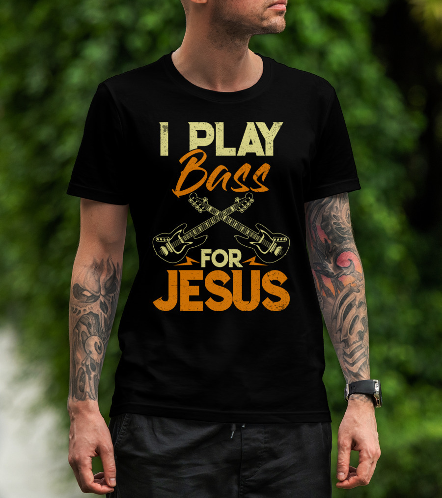I Play Bass For Jesus Bass Guitar Crossed Guitars T-Shirt