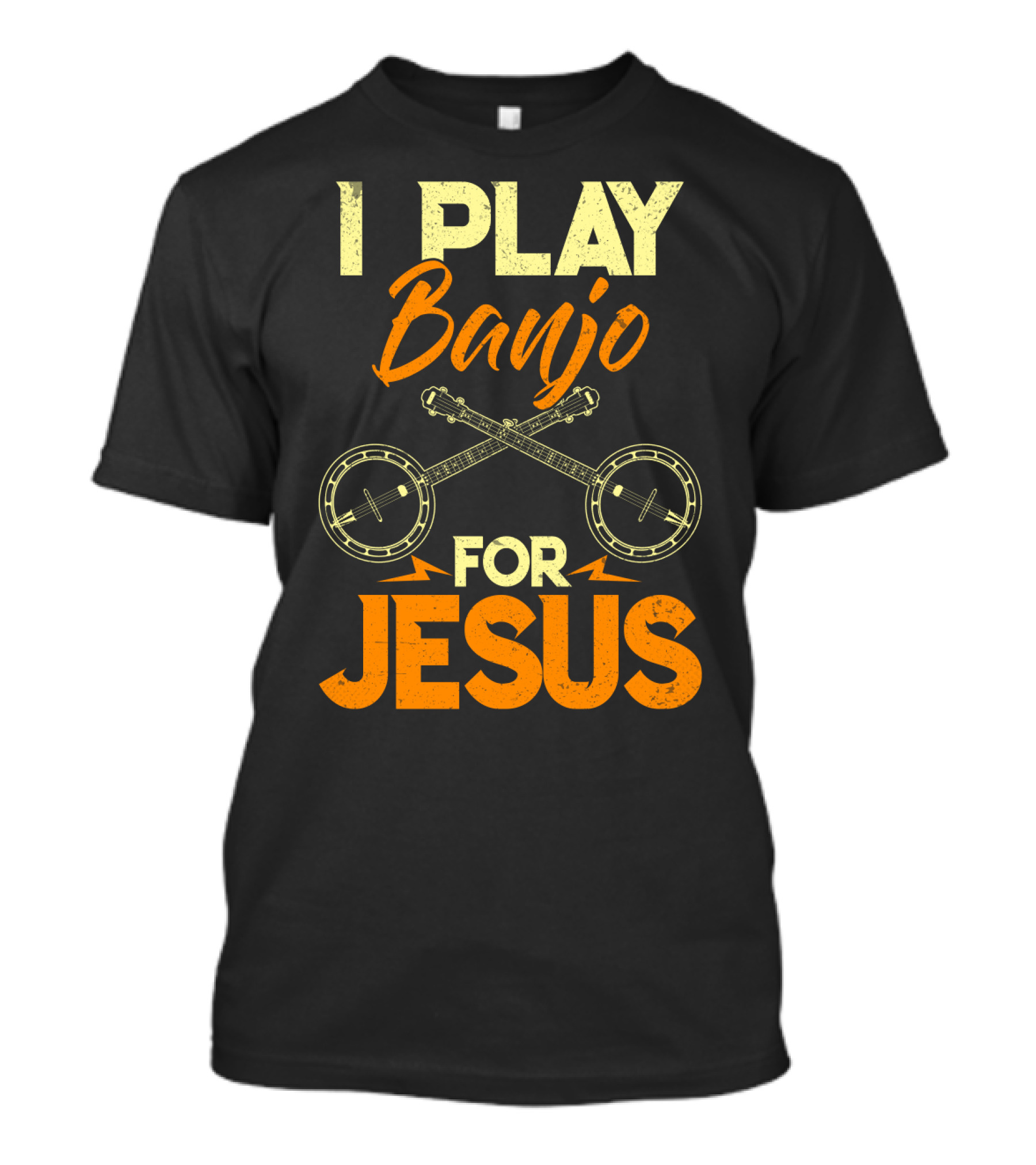 The I Play Banjo for Jesus with Crossed Banjos in Orange T-shirt is designed for everyday wear and a consistent fit. Fabric is pre-shrunk ring-spun cotton with durable stitching. See the size chart below for exact measurements.