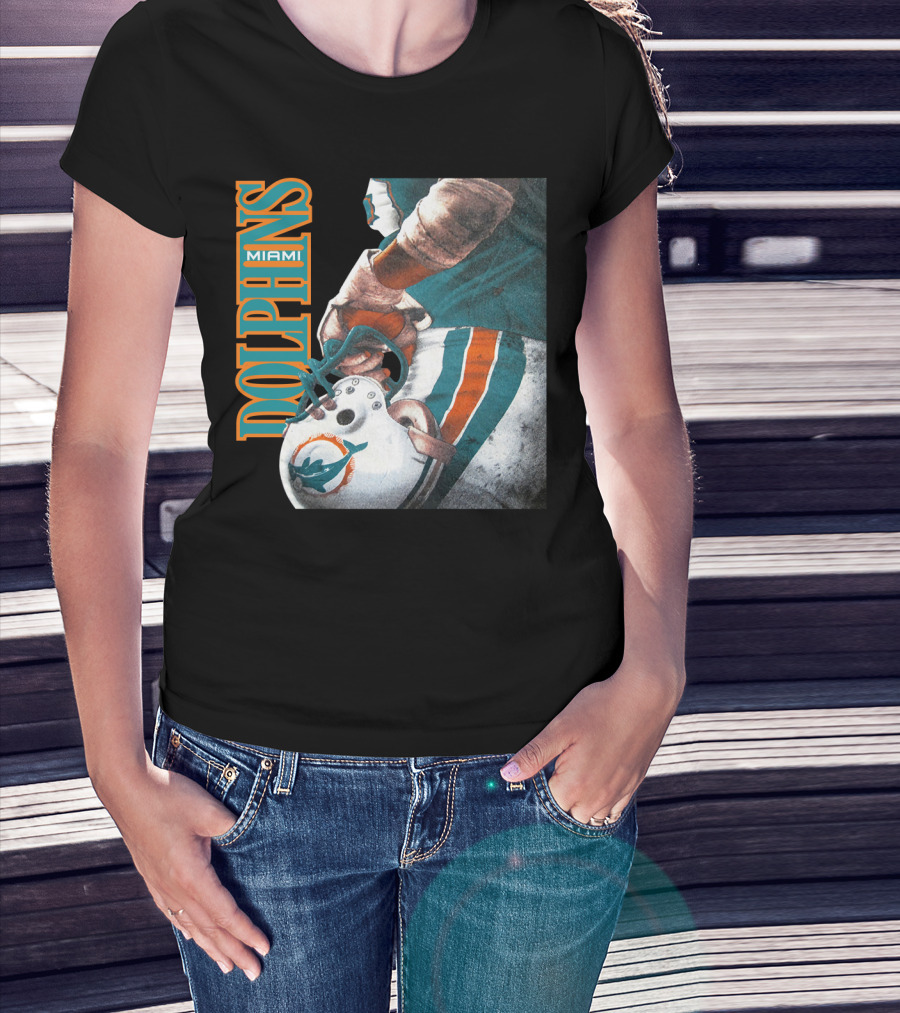 The Miami Dolphins Football Helmet T-shirt is designed for everyday wear and a consistent fit. Fabric is pre-shrunk ring-spun cotton with durable stitching. See the size chart below for exact measurements.
