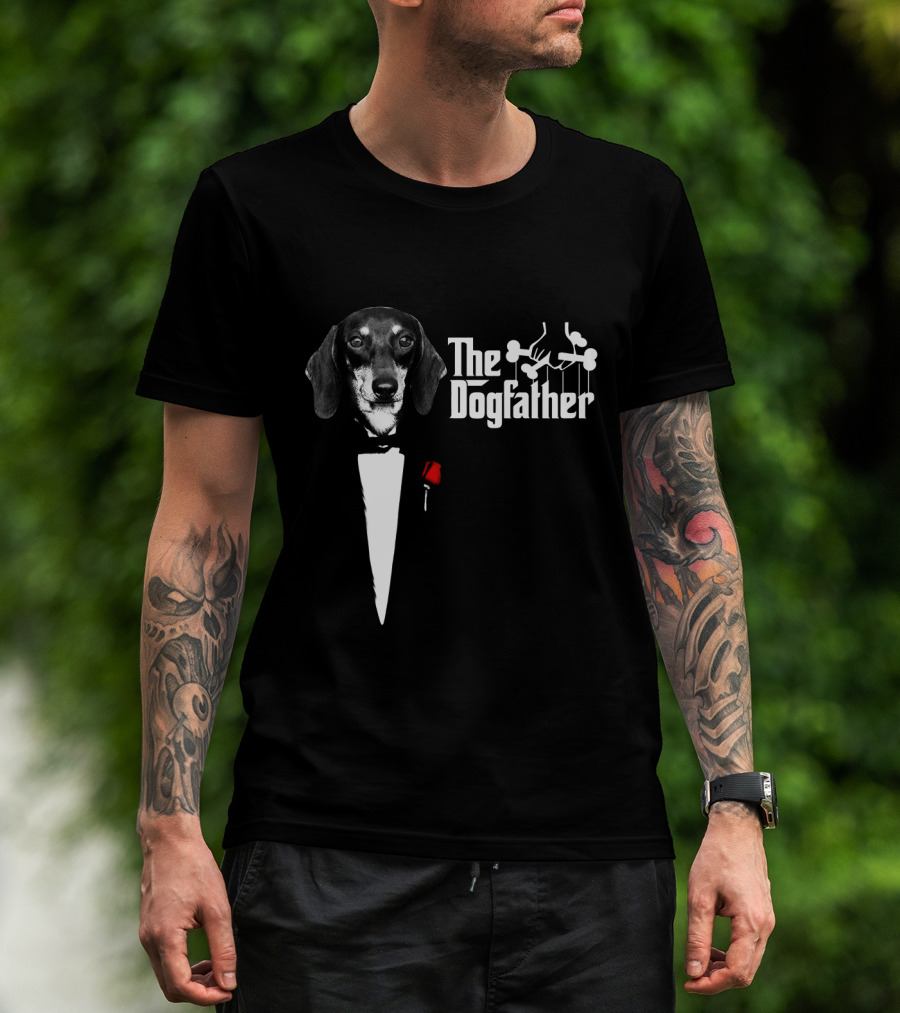 The Dogfather Dashund Tuxedo Rose Puppeteer T-Shirt