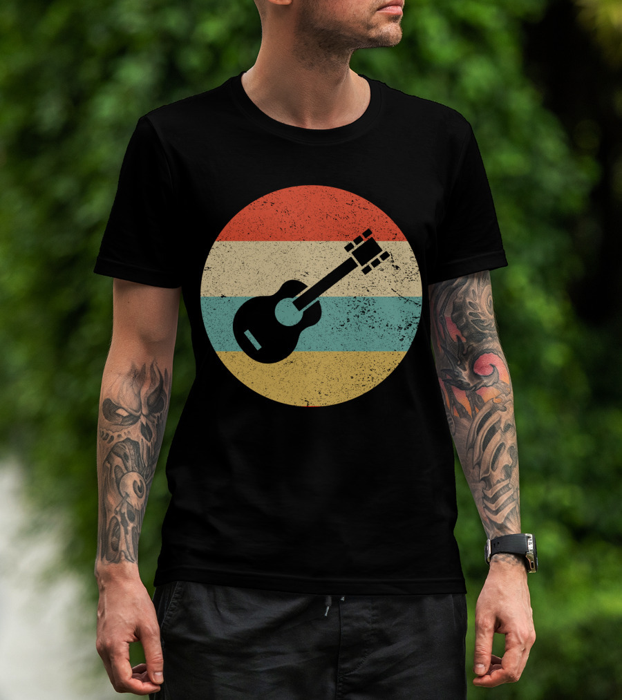 Vintage Retro Guitar Silhouette With Striped Circle T-Shirt