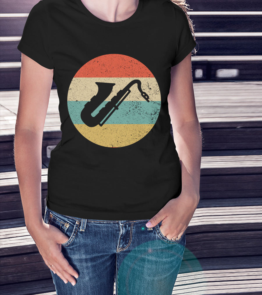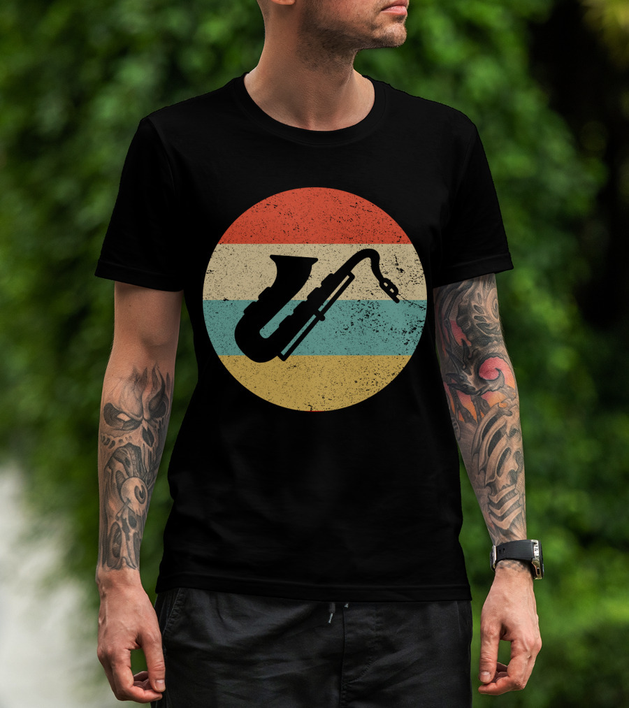 The Retro Saxophone Circle Stripes Vintage T-shirt is designed for everyday wear and a consistent fit. Fabric is pre-shrunk ring-spun cotton with durable stitching. See the size chart below for exact measurements.